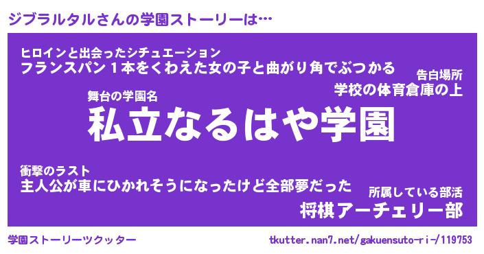 | 女子向けラノベタイトル風あだ名 | 『(仮)ジブラルタルのやんごとなき事情』 |