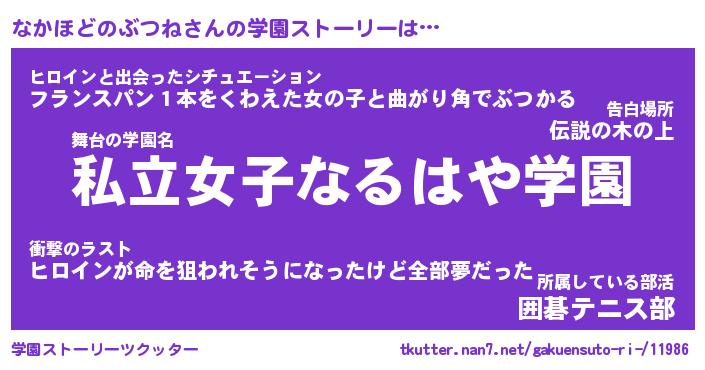 | 女子向けラノベタイトル風あだ名 | 『なかほどのぶつね姫と円卓の騎士』 |