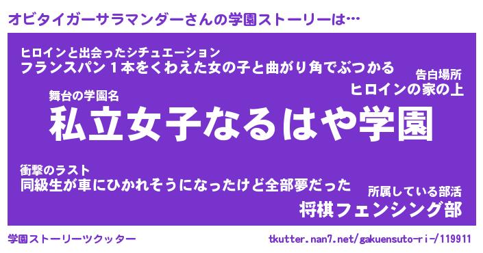 | 女子向けラノベタイトル風あだ名 | 『オビタイガーサラマンダー姫と円卓の騎士』 |