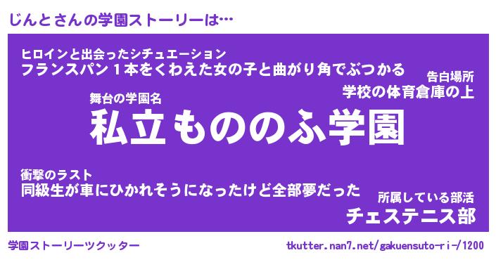 | 男性向けラノベタイトル風あだ名 | 『じんとの憂鬱』 |
