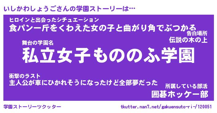 | 女子向けラノベタイトル風あだ名 | 『誰かこのいしかわしょうごを説明してください! ~契約から始まるウェディング~』 |
