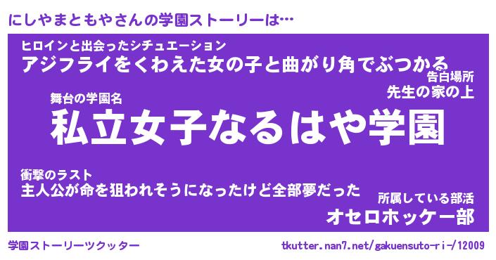 | 女子向けラノベタイトル風あだ名 | 『誰かこのにしやまともやを説明してください! ~契約から始まるウェディング~』 |