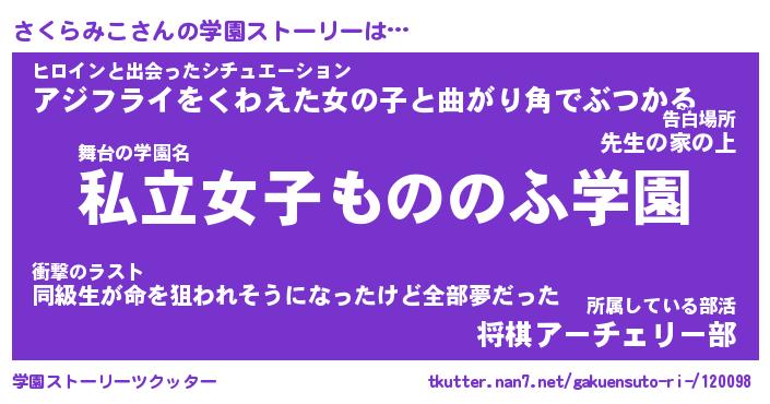 | ヒーロー風カッコイイあだ名 | 『スーパーサクラミコ』『炎刃騎士サク』 |
