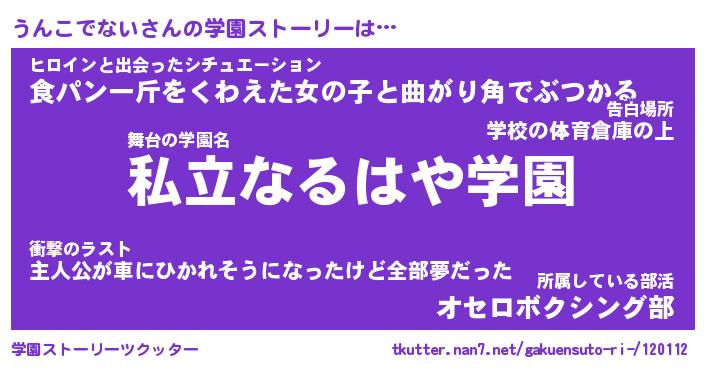 | 伝説のあだ名 | 『伝説のスナイパーうんこでない』 |