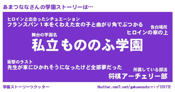 | 女子向けラノベタイトル風あだ名 | 『(仮)あまつななのやんごとなき事情』 |