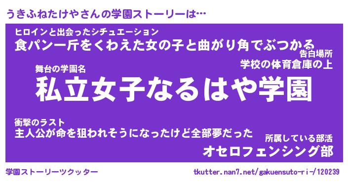 | 伝説のあだ名 | 『封印されしスナイパーうきふねたけや』 |