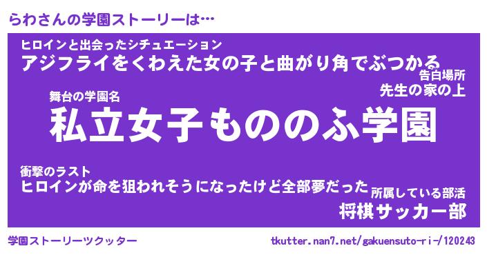 | 告白場所 先生の家の上 …「ふぃぎゅこ」 | 2月17日 06:24 |