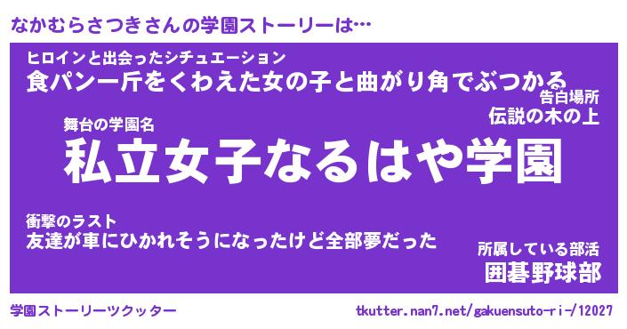 | 男性向けラノベタイトル風あだ名 | 『ナカムラサツキアートオンライン』 |