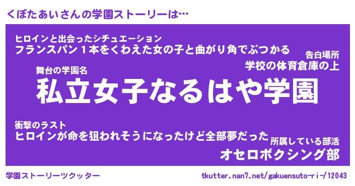 | ヒーロー風カッコイイあだ名 | 『スーパークボタアイ』『炎刃騎士クボ』 |