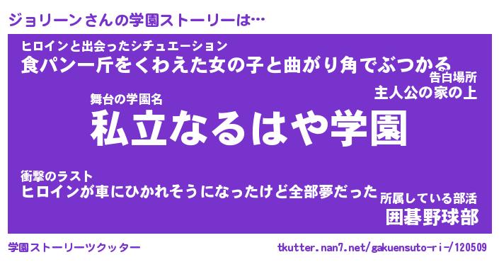 | 告白場所 先生の家の上 …「ふぃぎゅこ」 | 2月17日 06:24 |