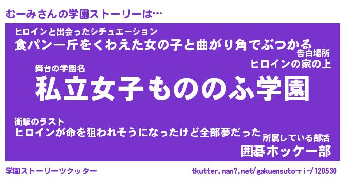 | ヘコむあだ名 | 『むーにゅー』『牛乳』『むーお』 |