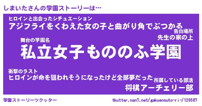 | ファンタジー風あだ名 | 『シマフェル』『エターナルシマイター』 |