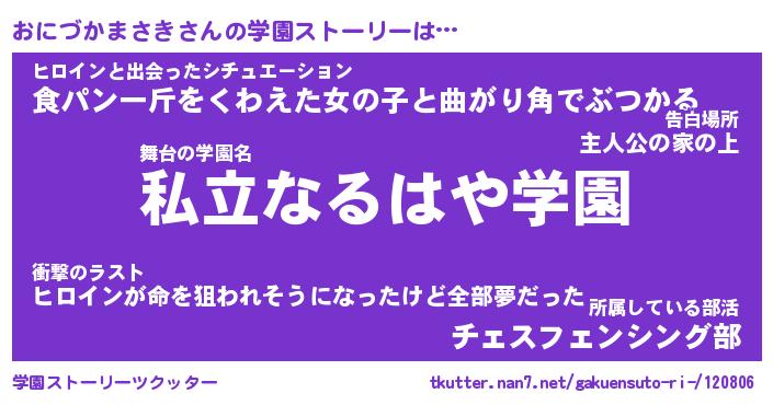 | 女子向けラノベタイトル風あだ名 | 『おにづかまさき姫と円卓の騎士』 |