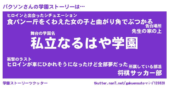 | 女子向けラノベタイトル風あだ名 | 『パクソン姫と円卓の騎士』 |