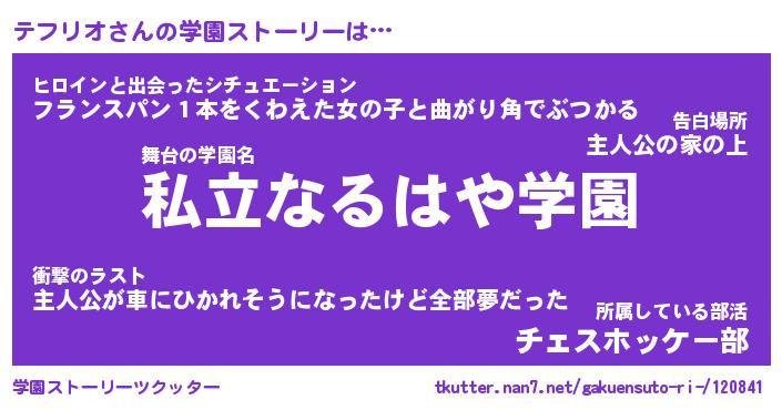 | 男性向けラノベタイトル風あだ名 | 『テフリオの憂鬱』 |