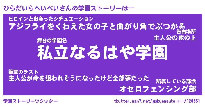 | 告白場所 先生の家の上 …「ふぃぎゅこ」 | 2月17日 06:24 |