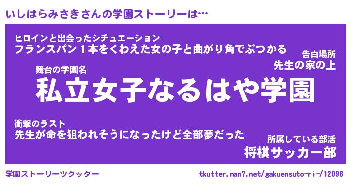| 伝説のあだ名 | 『不死鳥のスナイパーいしはらみさき』 |