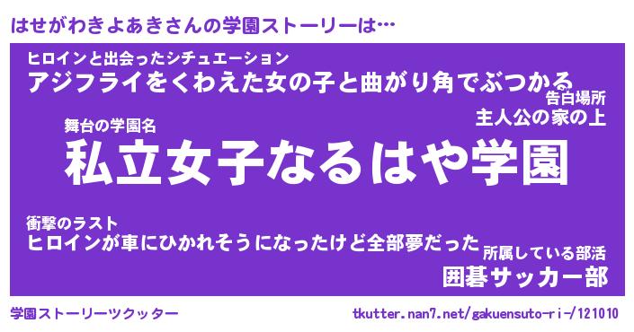 | 告白場所 先生の家の上 …「ふぃぎゅこ」 | 2月17日 06:24 |