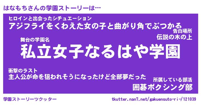 | ファンタジー風あだ名 | 『ハナフェル』『エターナルハナモチー』 |