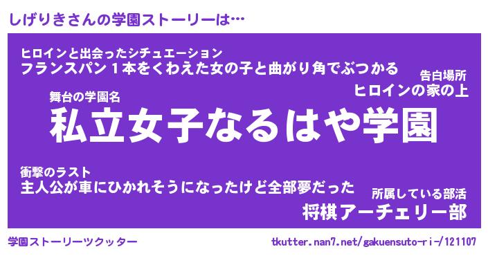 | 告白場所 先生の家の上 …「ふぃぎゅこ」 | 2月17日 06:24 |