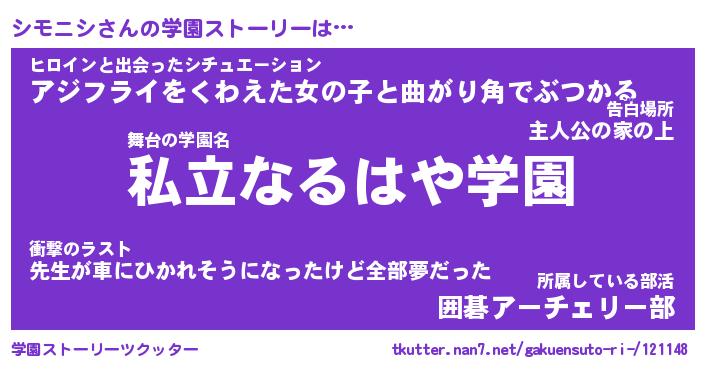| 告白場所 先生の家の上 …「ふぃぎゅこ」 | 2月17日 06:24 |