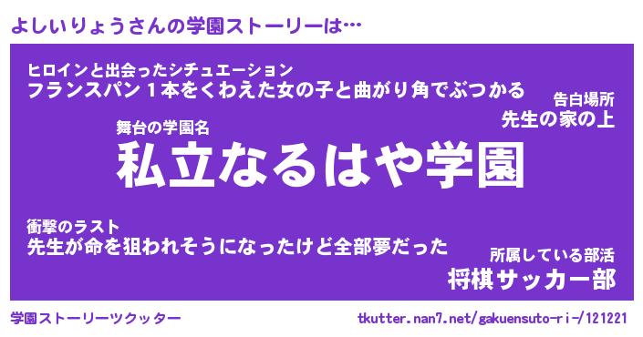 | 告白場所 先生の家の上 …「ふぃぎゅこ」 | 2月17日 06:24 |