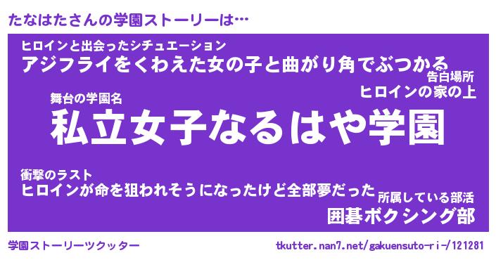 | 告白場所 先生の家の上 …「ふぃぎゅこ」 | 2月17日 06:24 |