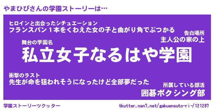 | 告白場所 先生の家の上 …「ふぃぎゅこ」 | 2月17日 06:24 |