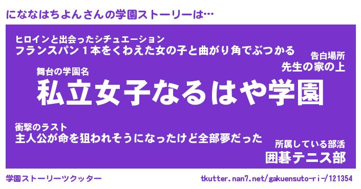 | 女子向けラノベタイトル風あだ名 | 『誰かこのにななはちよんを説明してください! ~契約から始まるウェディング~』 |