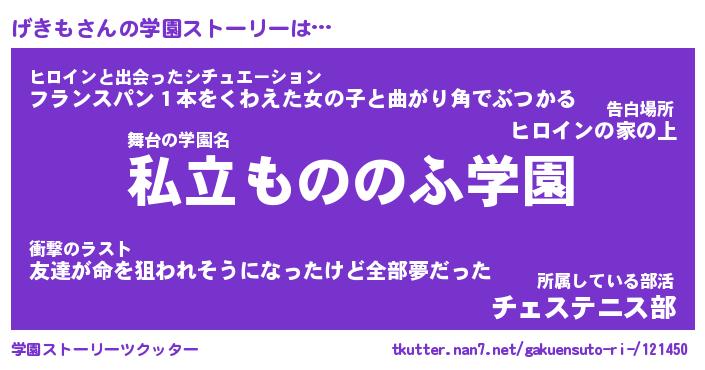 | 男性向けラノベタイトル風あだ名 | 『げきもの憂鬱』 |