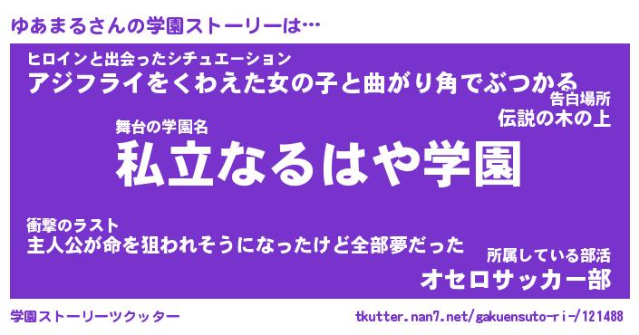 | 伝説のあだ名 | 『伝説のスナイパーゆあまる』 |