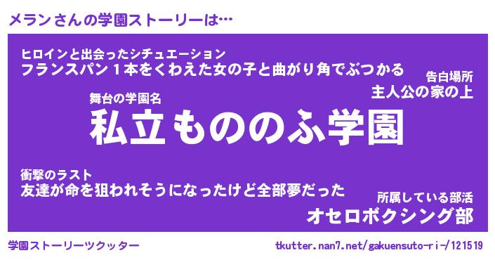 | 男性向けラノベタイトル風あだ名 | 『メランの憂鬱』 |