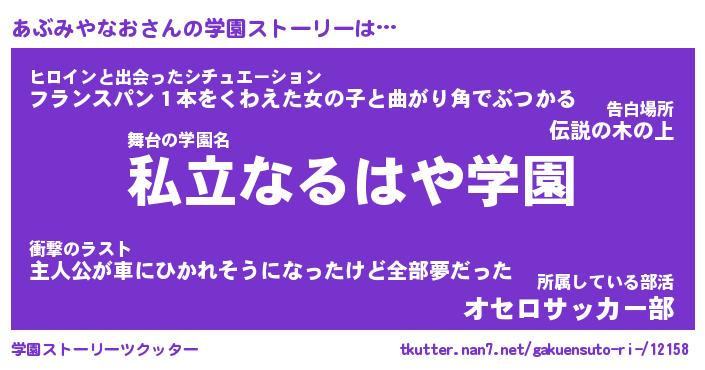 | 男性向けラノベタイトル風あだ名 | 『あぶみやなおの憂鬱』 |