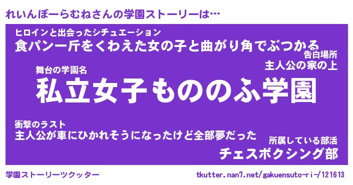 | 女子向けラノベタイトル風あだ名 | 『れいんぼーらむね姫と円卓の騎士』 |