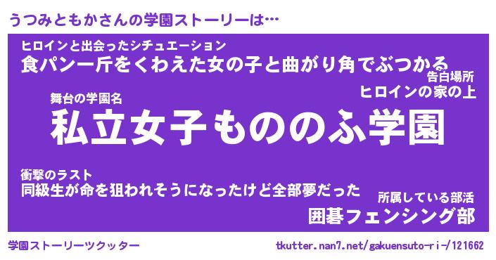 | 伝説のあだ名 | 『封印されし竜騎士うつみともか』 |