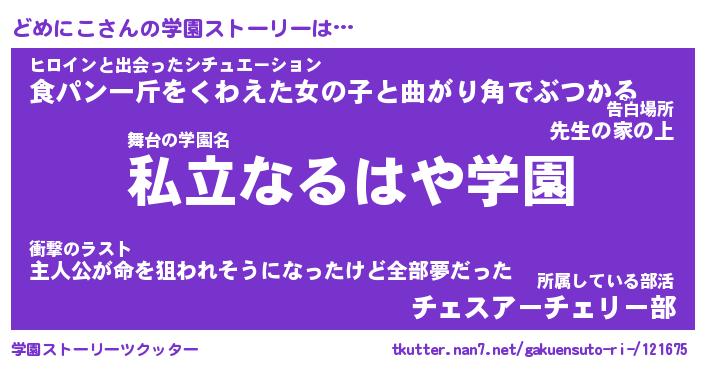 | 告白場所 先生の家の上 …「ふぃぎゅこ」 | 2月17日 06:24 |