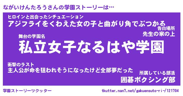 | 女子向けラノベタイトル風あだ名 | 『誰かこのながいけんたろうを説明してください! ~契約から始まるウェディング~』 |