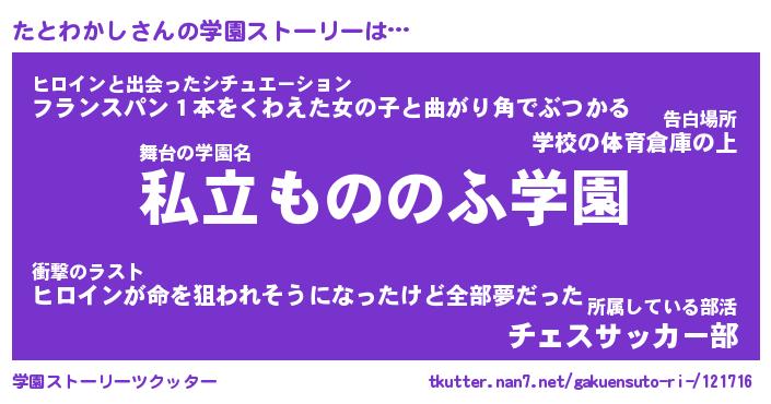 | 男性向けラノベタイトル風あだ名 | 『たとわかしの憂鬱』 |