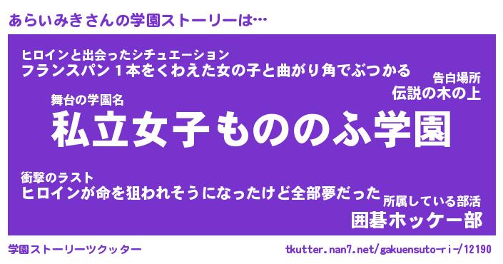 | 告白場所 先生の家の上 …「ふぃぎゅこ」 | 2月17日 06:24 |