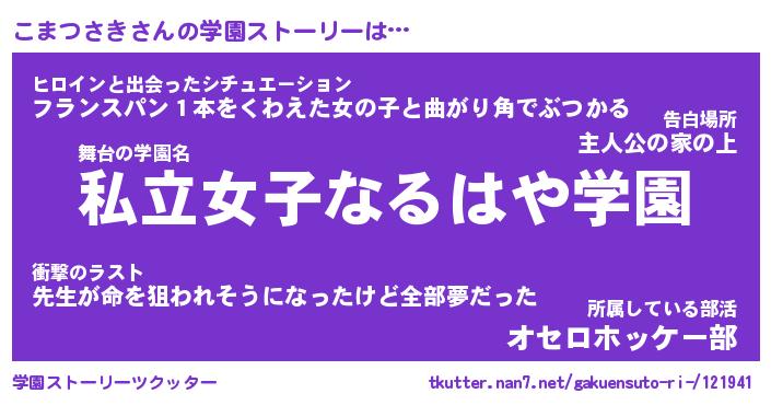 | ヒーロー風カッコイイあだ名 | 『スーパーコマツサキ』『暗黒騎士コマ』 |