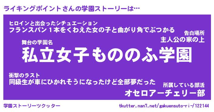 | 男性向けラノベタイトル風あだ名 | 『ライキングポイントアートオンライン』 |