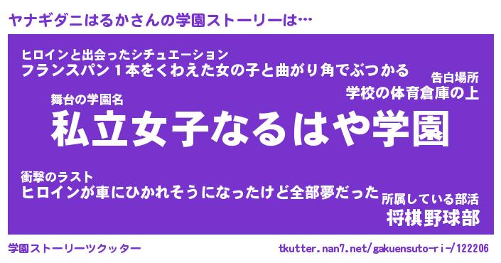 | 伝説のあだ名 | 『不死鳥のスナイパーヤナギダニはるか』 |