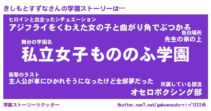 | 恥ずかしいあだ名 | 『プリティーきしもとすずな』『きしちん』 |