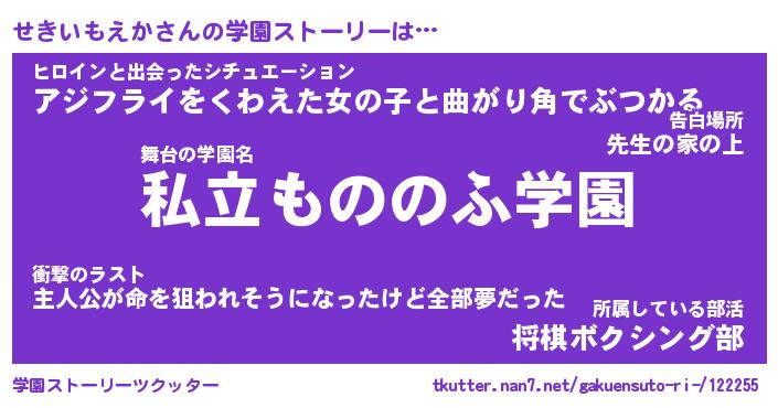 | 男性向けラノベタイトル風あだ名 | 『せきいもえかの憂鬱』 |