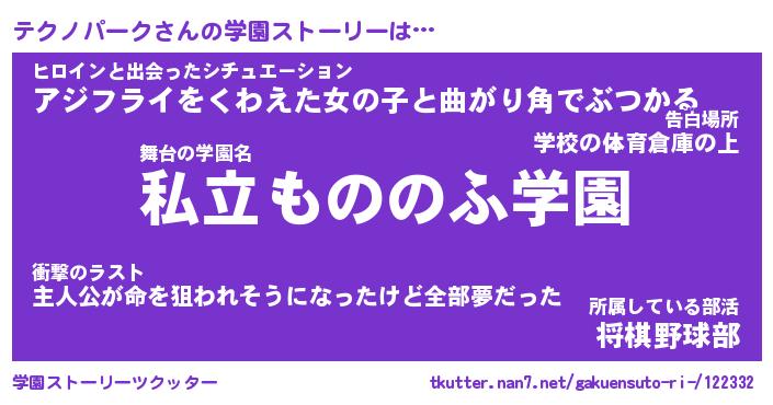 | 男性向けラノベタイトル風あだ名 | 『テクノパークの憂鬱』 |