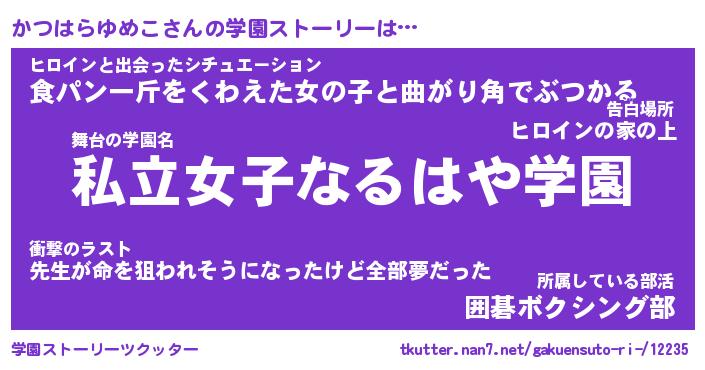 | 肩書あだ名 | 『かつはらゆめこ御曹司』 |