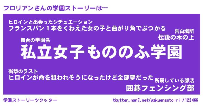 | ファンタジー風あだ名 | 『フロフェル』『エターナルフロリアンー』 |