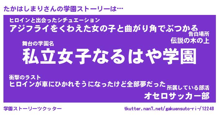 | 伝説のあだ名 | 『封印されしスナイパーたかはしまり』 |