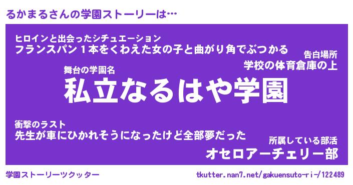 | 男性向けラノベタイトル風あだ名 | 『るかまるの憂鬱』 |