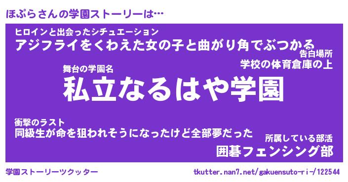 | 告白場所 先生の家の上 …「ふぃぎゅこ」 | 2月17日 06:24 |